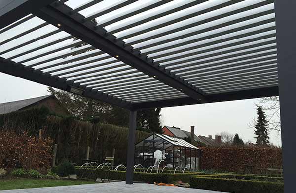 Beim Lamellendach kann man auf Wunsch einfach per Fernbedienung und gemütlich vom Lieblingsplatz aus sein Dach öffnen. Ähnlich einer Ziehharmonika, schieben sich die Aluminium-Lamellen zusammen oder auseinander. Mit dieser variablen Wetterfunktion, lassen sich die ersten Sonnenstrahlen ungefiltert genießen oder im Trocknen sitzen und die Natur genießen. Ebenso schließt das Dach auch mal automatisch über Regensensoren, damit alles schön trocken bleibt.